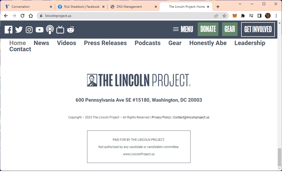 "Lincoln Project" is a fake, traitorous Democratic party operation for China run from a US Post Office box on Pennsylvania Avenue in Washington DC.